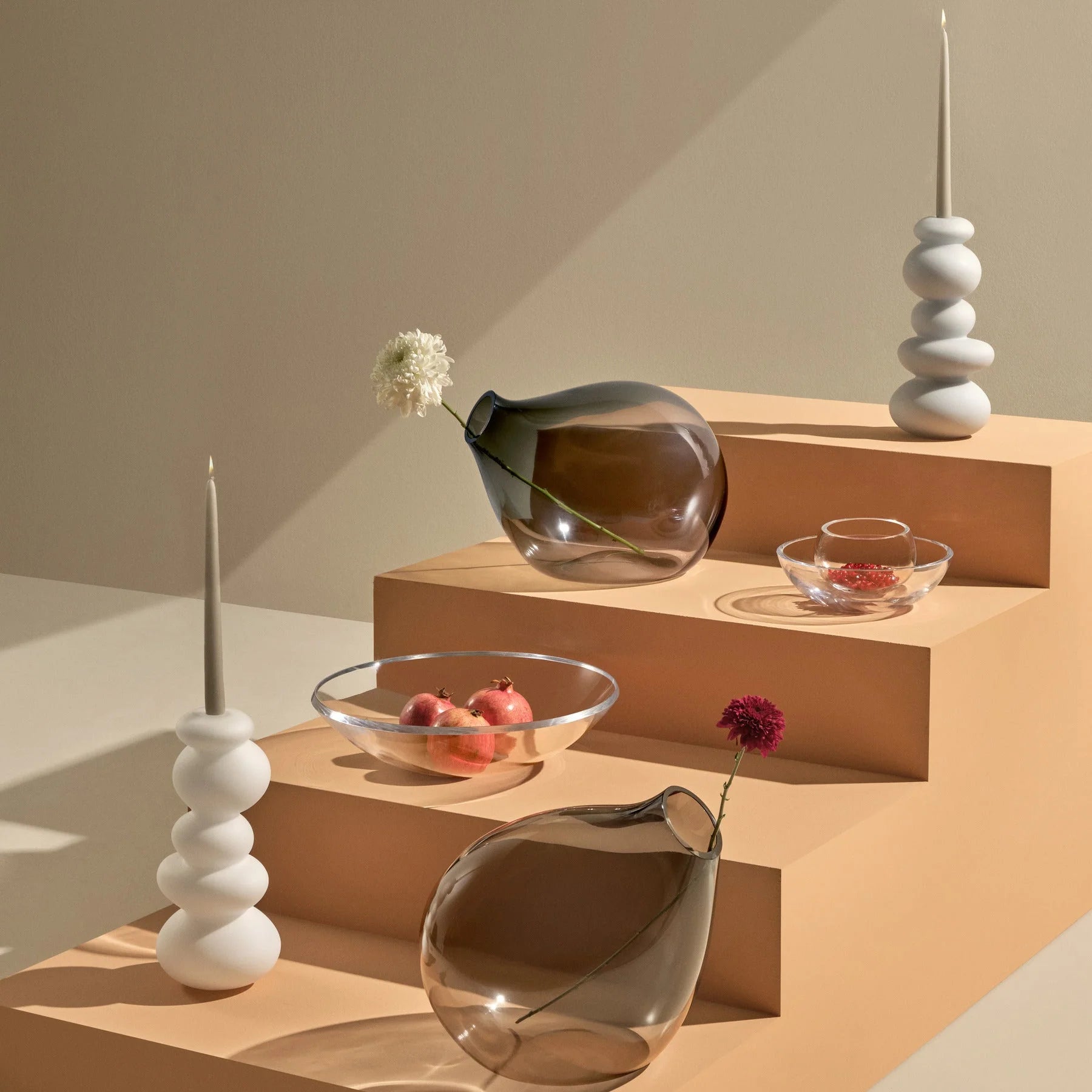 Diese große Vase NUDE Bubble kombiniert ein klares, unkompliziertes Design. Sie wird von einem Glasbläsermeister in Handarbeit hergestellt, das jedes Stück zu einem echten Unikat macht. Die runde, skulpturale Silhouette bietet einen bemerkenswerten Kontrast zu den frischen Blüten, die darin platziert werden. Es müssen nicht immer Blumensträuße sein.Einzelne Blüten oder Zweige kommen bei dieser schönen Vase am bestem zur Geltung.