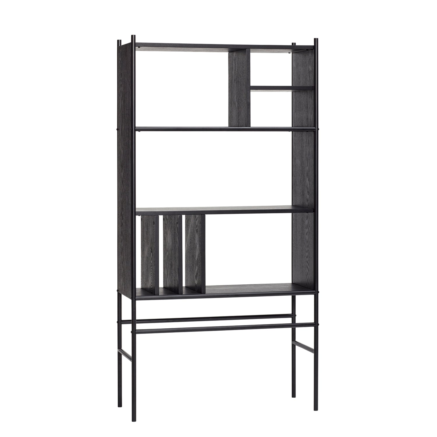 Das Divide Regal Schwarz ist ein stilvolles und FSC-zertifiziertes Regal. Es besteht aus einer Kombination aus Eschenholz, und Metall, die ein elegantes und modernes Design bilden. Dieses Regal fällt durch seine geraden, schlichten Linien und sein raffiniertes Erscheinungsbild auf. Es bietet viel Platz für die Aufbewahrung und Präsentation verschiedener Dekorationsobjekte. Mit seinem farbigen Holz und seiner modernen, einzigartigen Form ist es eine ausgezeichnete Wahl für jeden Wohnraum.