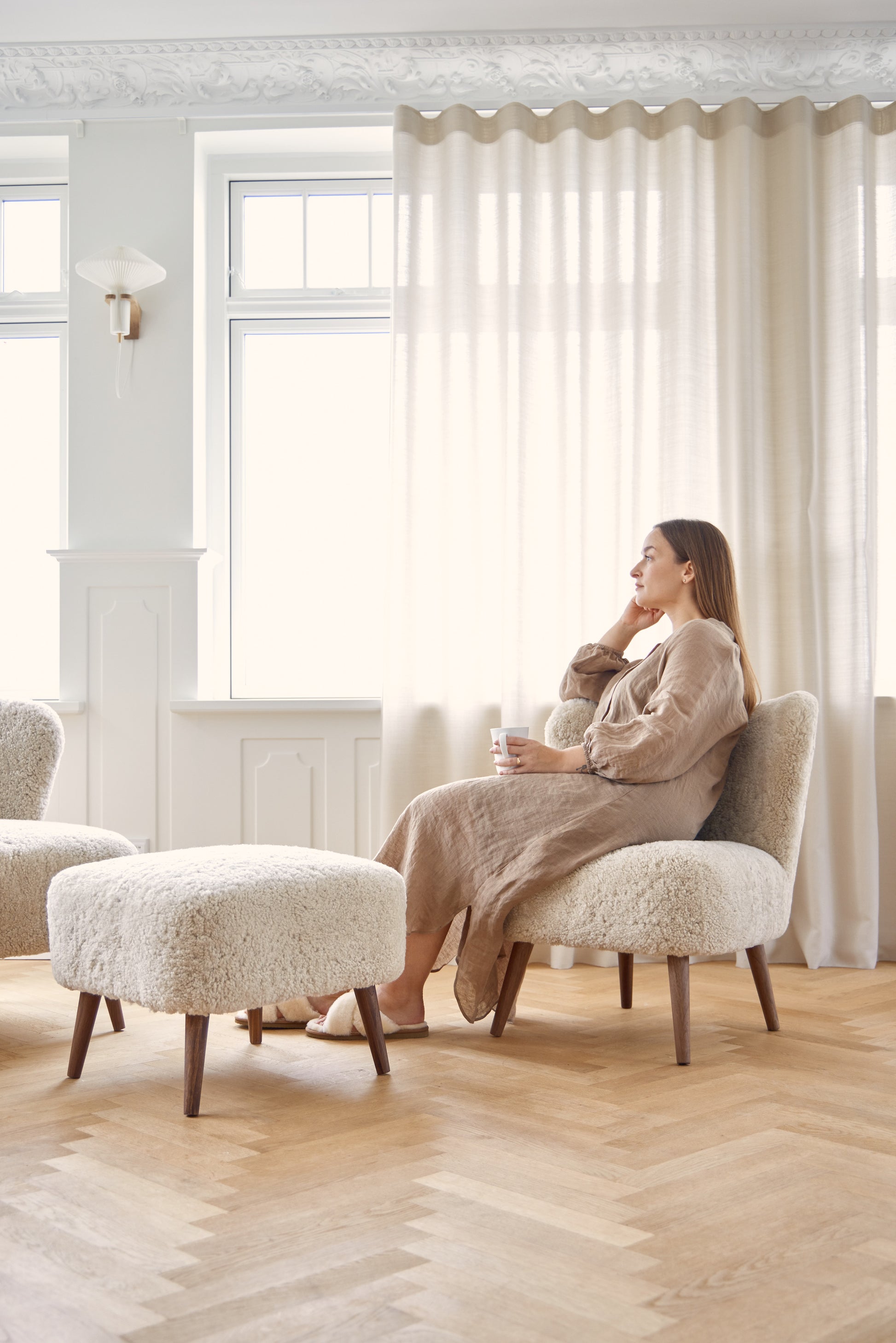 Der Hocker Emily von Natures Collection ist mit dem weichsten Lammfell aus Neuseeland bezogen, das einen natürlichen und warmen Look hat, der nordischen Charme ausstrahlt. Die weichen Linien und der einladende Charakter des Hockers bringen Leben in jedes Interior. Und wenn Ihnen der natürliche Look gefällt, sollten Sie nicht zögern sich den passenden Sessel anzusehen.
