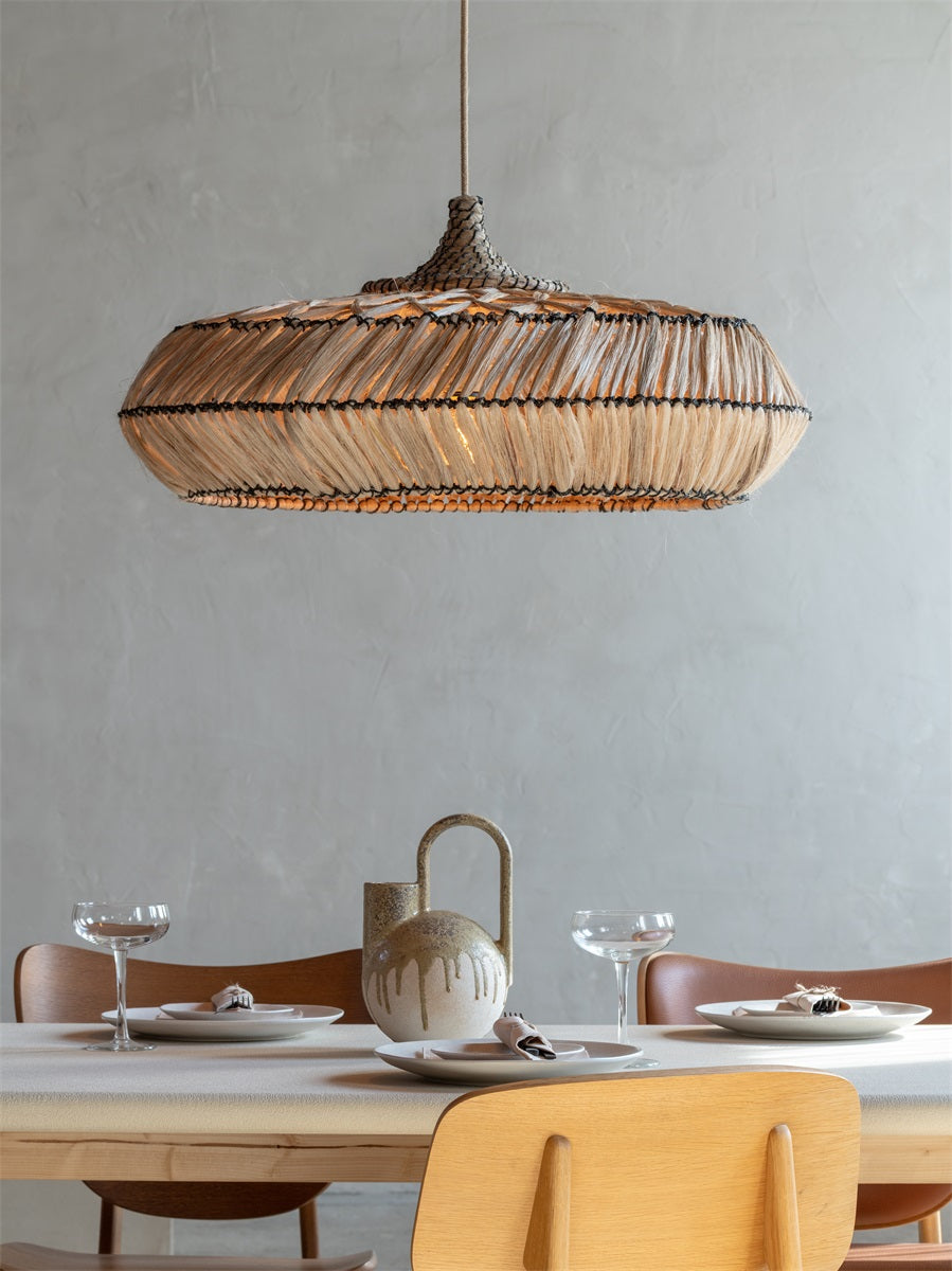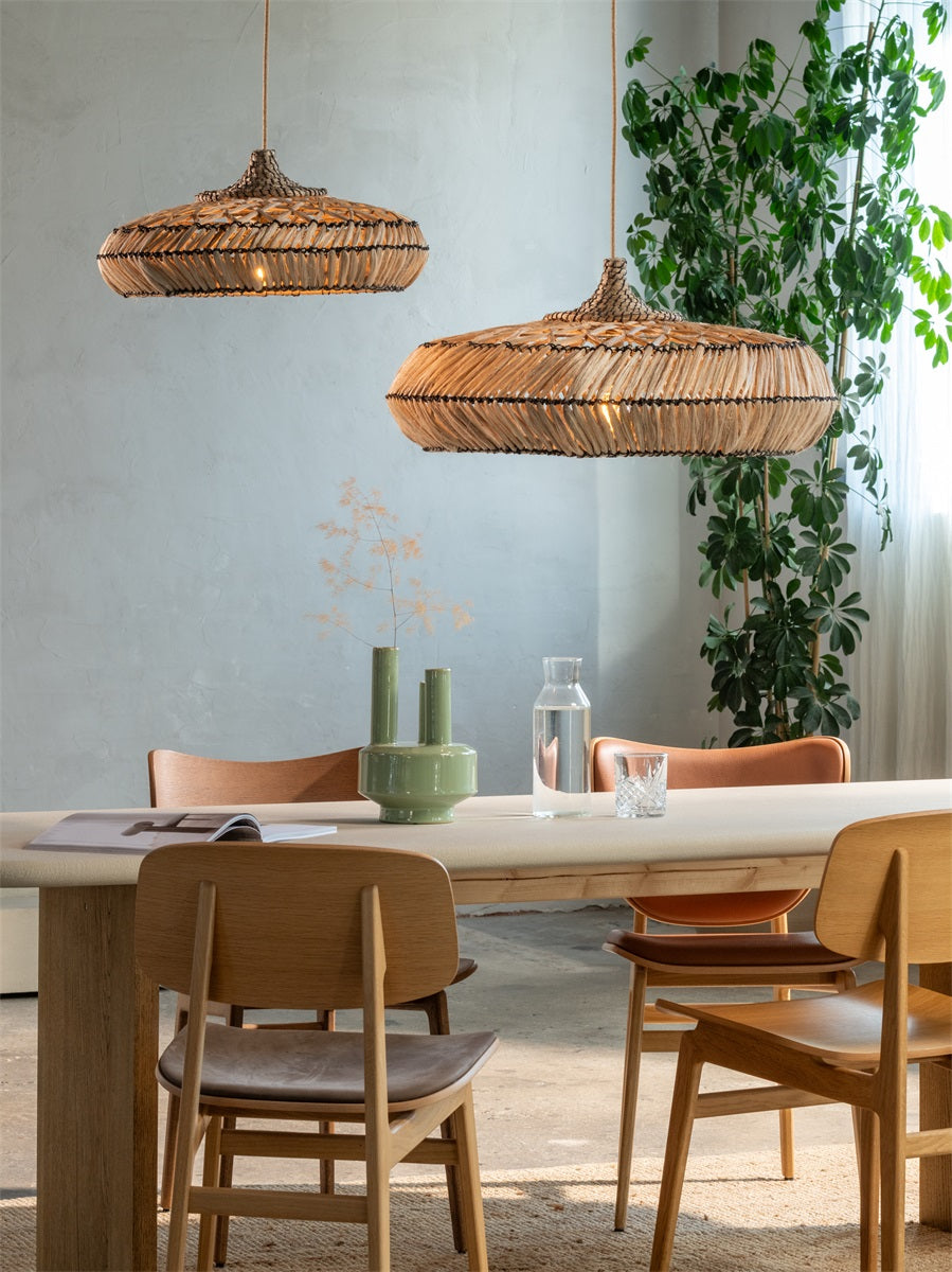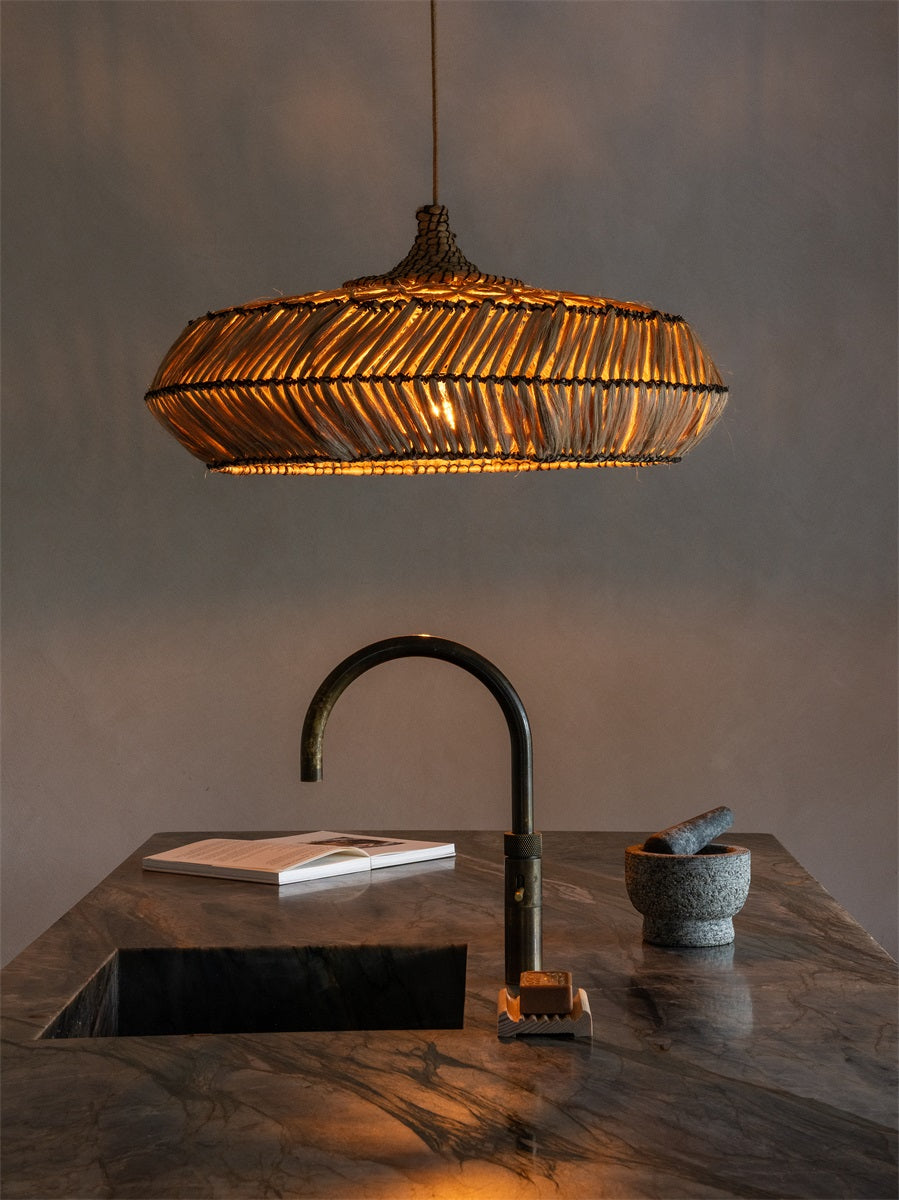 Mit ihrem natürlichen Farbton und der organischen Form fügt sich die Rinjani Pendelleuchte harmonisch in Boho-, Scandi- und moderne Wohnkonzepte ein. Jede Leuchte ist ein Unikat und steht für zeitloses Design sowie bewussten Konsum.