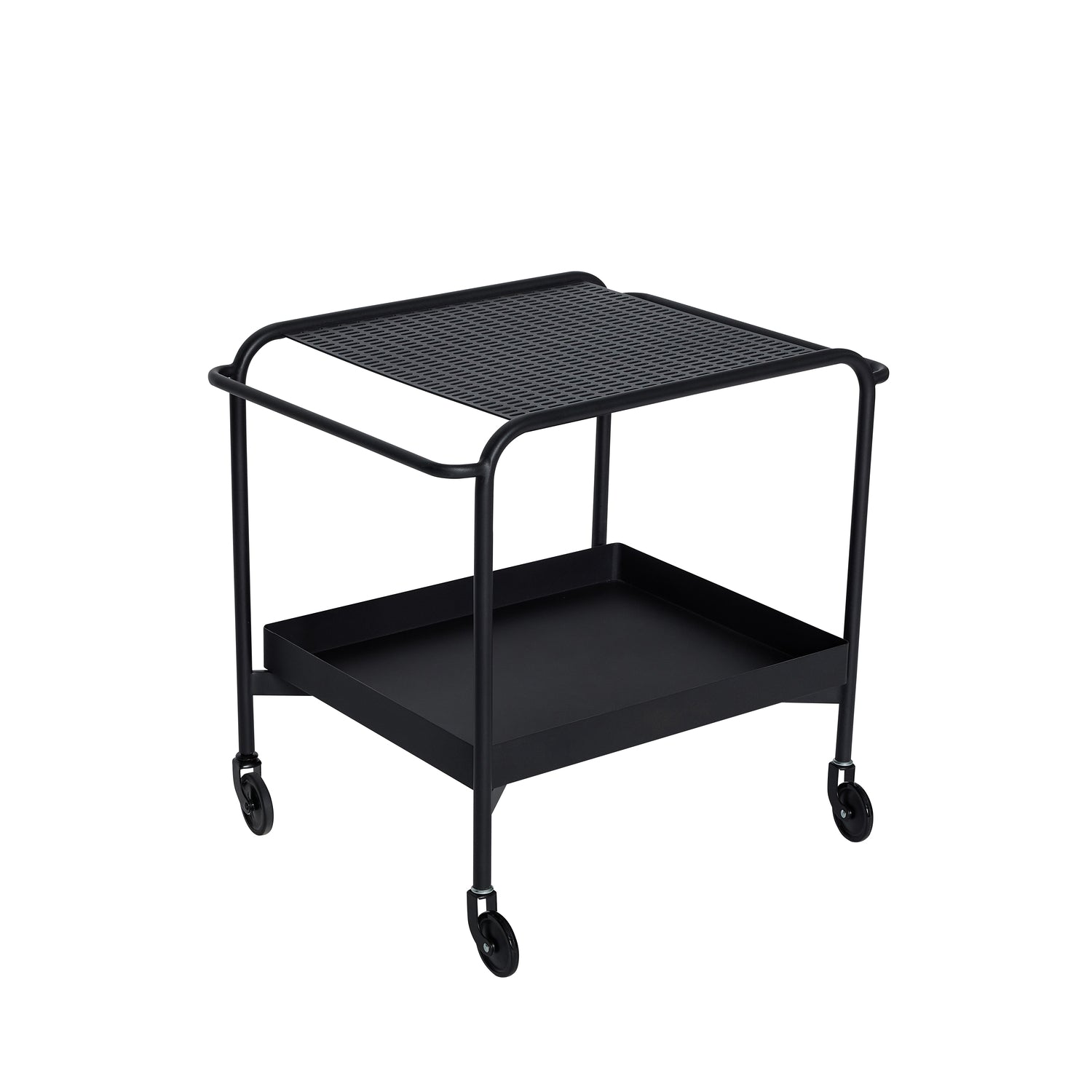 Der Push Servierwagen unterstützt Sie beim Aufräumen und Verschönern Ihrer Wohnung. Gefertigt aus robustem Metall in elegantem Schwarz, gleitet dieses vielseitige Wunder mühelos in jede Ecke Ihres Zuhauses. Könnte es Ihre Mini-Bar oder Snack-Station sein? Oder dient es vielleicht als transportable Buchaufbewahrung? Nutzen Sie es als Aufbewahrungsmöglichkeit in Küche oder Wohnzimmer und genießen Sie seine einfache Mobilität. Wahrhaftig ein Muss, um alles, was Sie lieben, griffbereit und leicht zu bewegen zu halten.