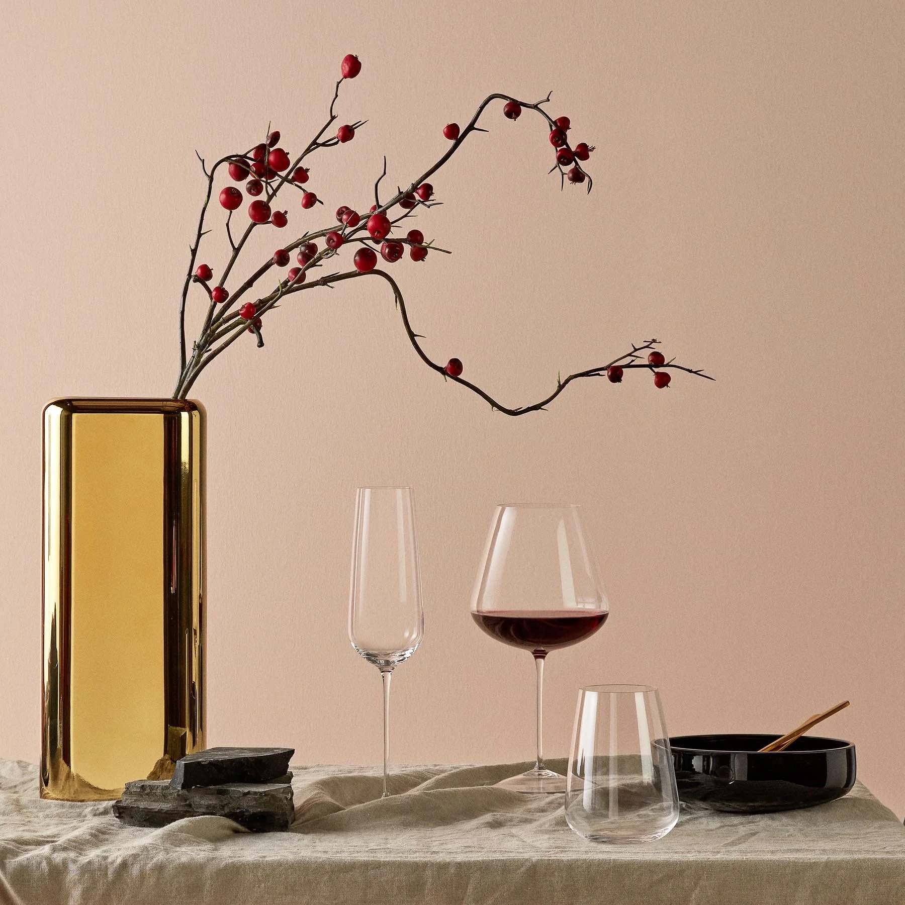 Form & Funktion: Der großzügige Glaskörper mit verjüngtem Rand soll Aromen befreien und die Weinführung sanft zur Mitte des Gaumens lenken - ideal für elegante, aromatisch leichtere Rotweine.