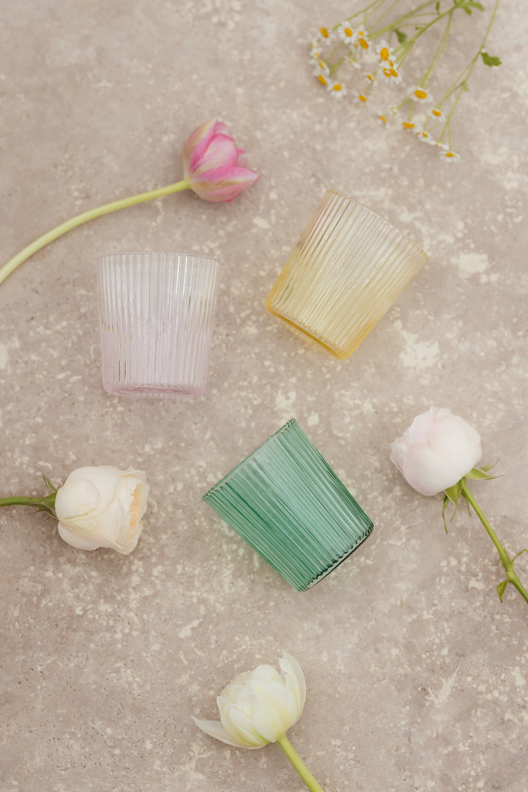 Die gerippten Trinkgläser sind die ideale Ergänzung zu den schönen Wasserflaschen von Paveau. Es gibt die Gläser in den gleichen Farben und sie verkörpern die perfekte Mischung aus Eleganz und Umweltfreundlichkeit. Man kann sie für das Tablesetting in der gleichen Farbe, wie die der Wasserflaschen wählen, oder auch sehr schön, bunt gemischt.